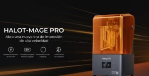 Halot Mage Pro de Creality es una impresora 3D de resina que cuenta con una pantalla LCD monocromática de 8K. Puede imprimir a hipervelocidad de hasta 170 mm/h y tiene una uniformidad de luz de más del 90 %. La impresora también viene con una serie de características que la hacen fácil de usar, como una bomba de resina inteligente, un purificador de aire inteligente y una tapa abatible “MageArch”.